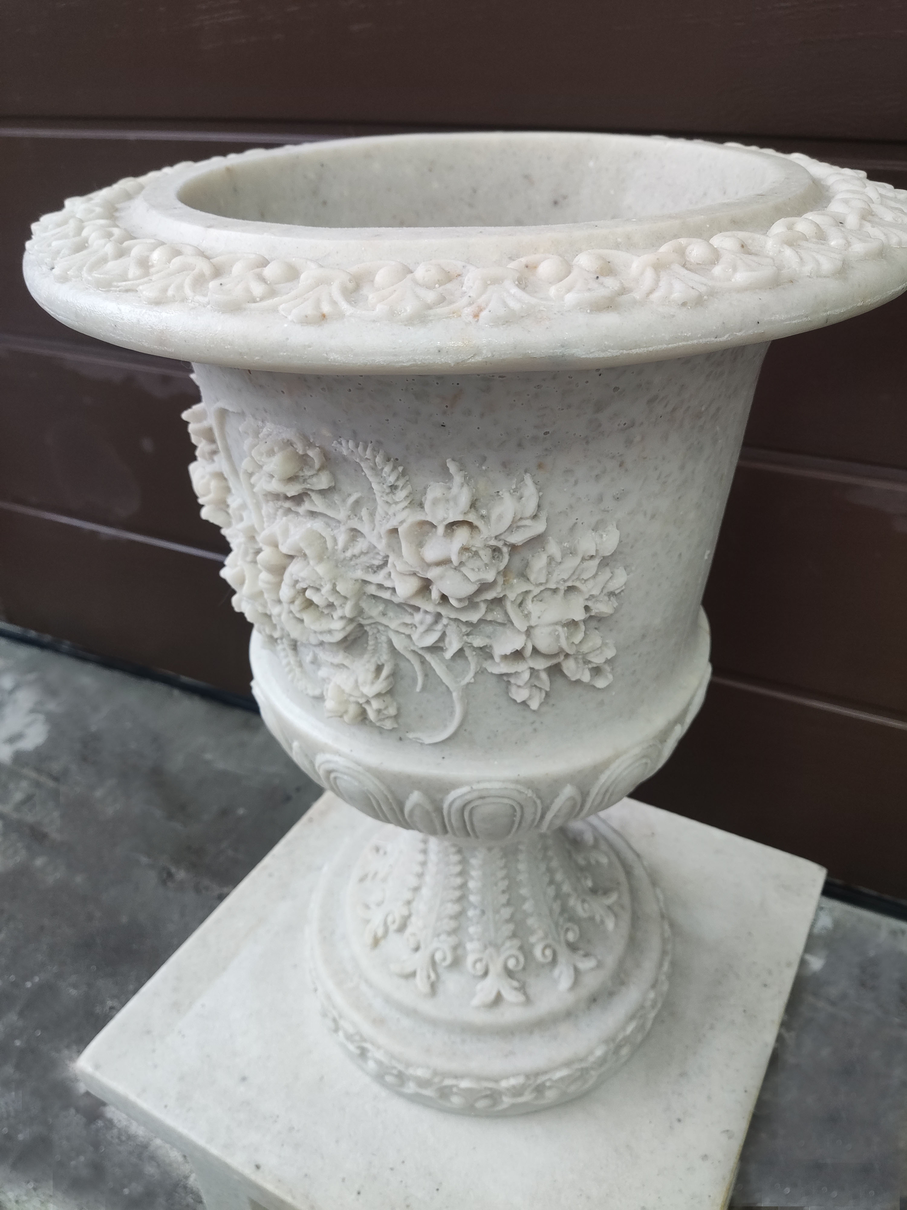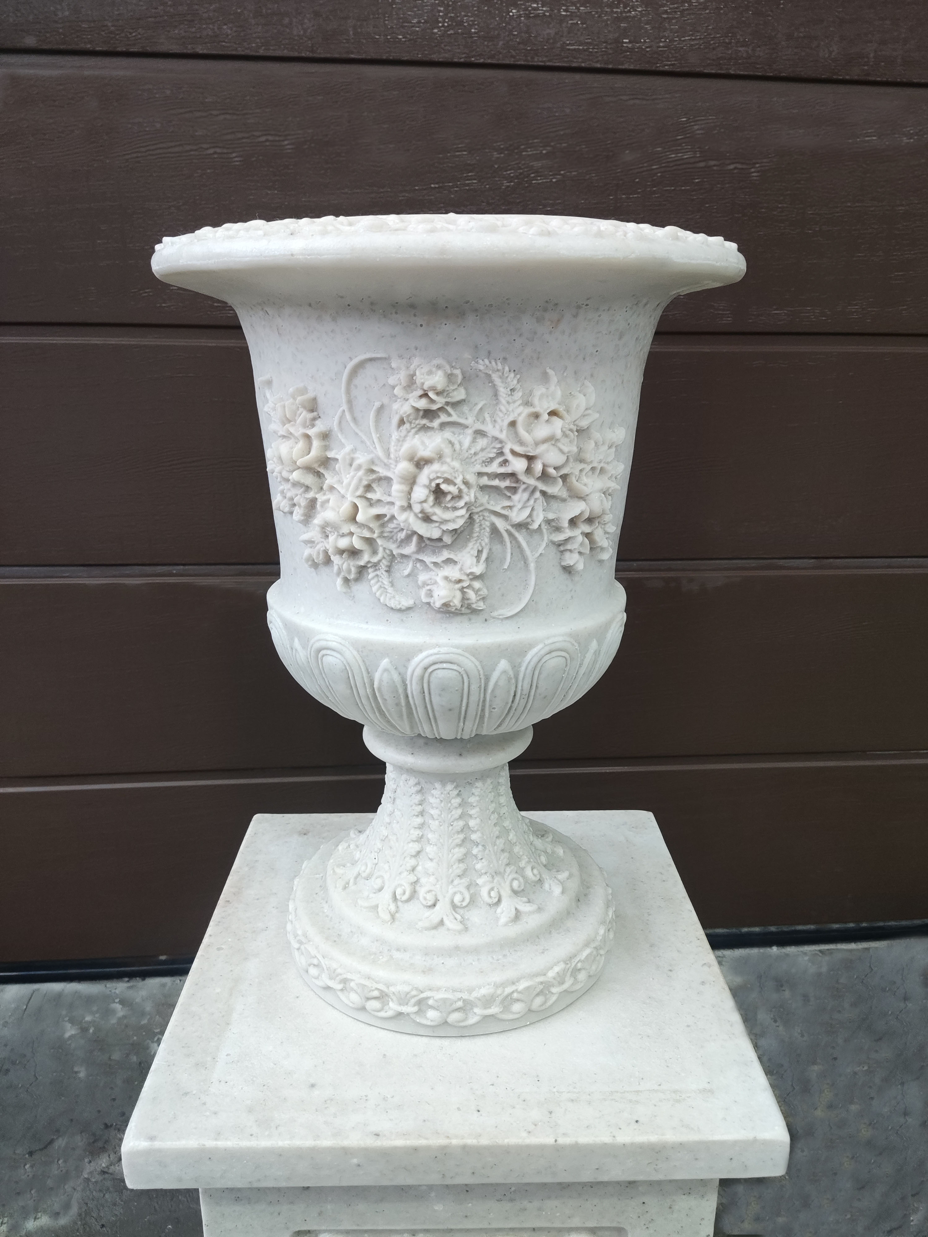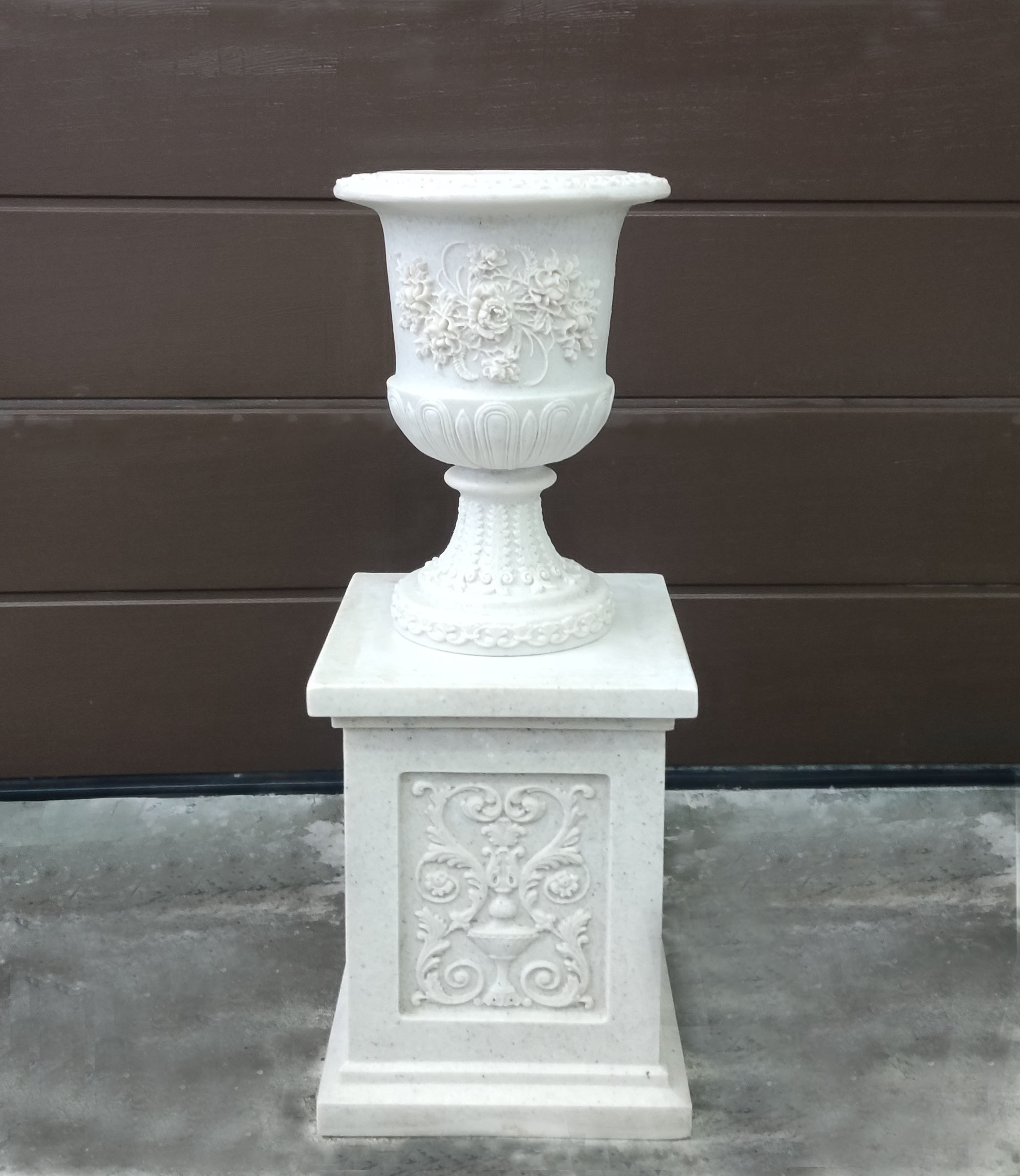 Эта новинка сразу притягивает свой взгляд обилием декора как на вазоне, так на ножке. Вазон станет украшением любого интерьера, а также прекрасно подойдет для размещения в саду и посадки цветущих растений. Отлично будет смотреться на постаменте.